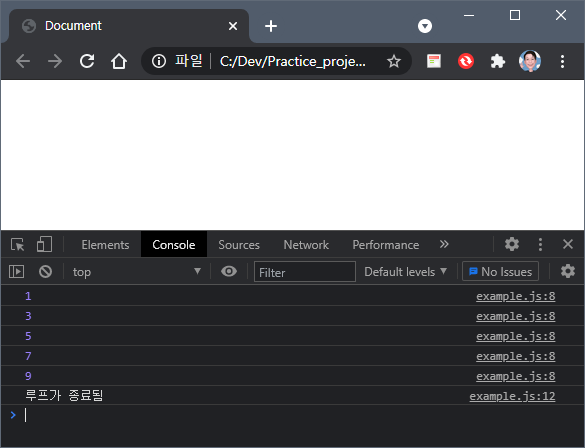 console.log('루프가 종료됨');