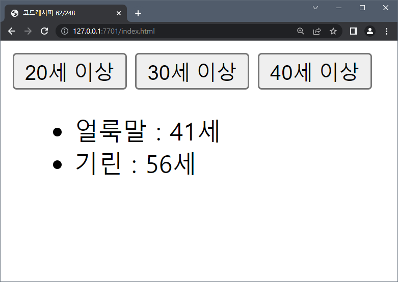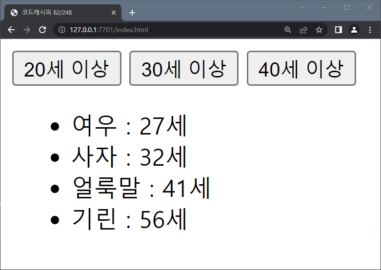 listHtml += `<li>${data.name} : ${data.age}세</li>`;