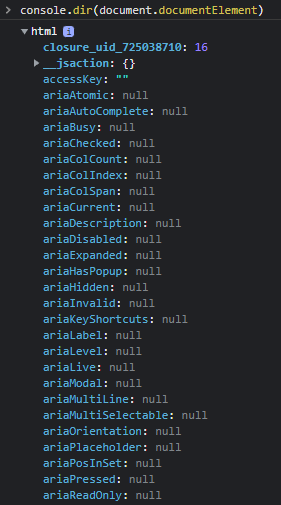 'console.dir(dicument.documentElement)'의 콘솔 로그에서 html 요소가 반환되는 것을 확인할 수 있다.