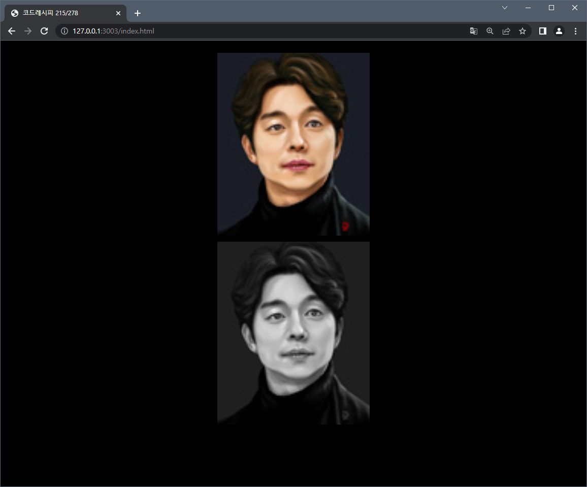 두 번째 캔버스 요소에 putImageData()를 사용해 값을 대입한 모노크롬 사진을 표시한다.