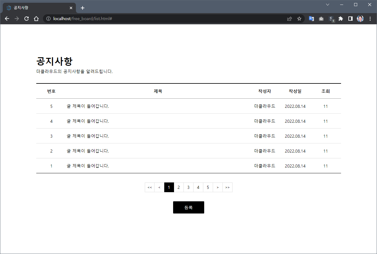 반응형 게시판 만들기 2 - 게시판 목록과 페이지 버튼