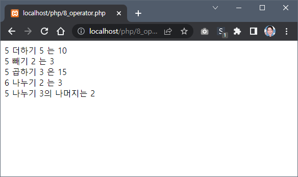 $minus = 5 - 2; // 5 - 2를 연산한 값이 변수 minus에 대입