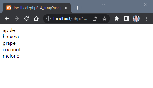 array_push($fruit, 'apple', 'banana', 'grape', 'coconut', 'melone');