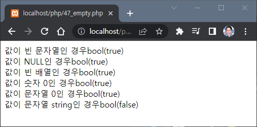 046_PHP 변수의 값이 빈 값인지 값의 유무 확인하기 empty()
