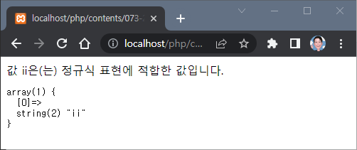echo "값 {$str}은(는) 정규식 표현에 적합한 값입니다.";