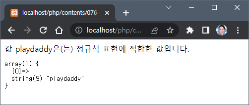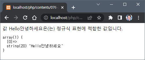 echo "값 {$str}은(는) 정규식 표현에 적합한 값입니다.";