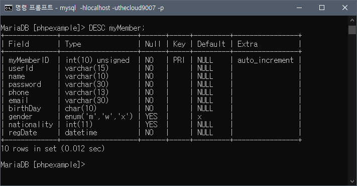 | [PHP] MySQL 테이블 구조 보기 DESC (0) | 2022.09.30 |