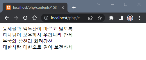 파일의 내용을 nl2br() 함수가 반환한 값을 출력한다.