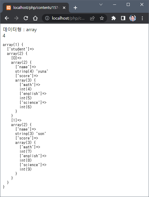 echo "데이터형 : ".gettype($data)."<br>";