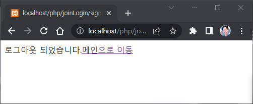 [로그아웃] 링크를 누르면 로그아웃 페이지로 이동된다.