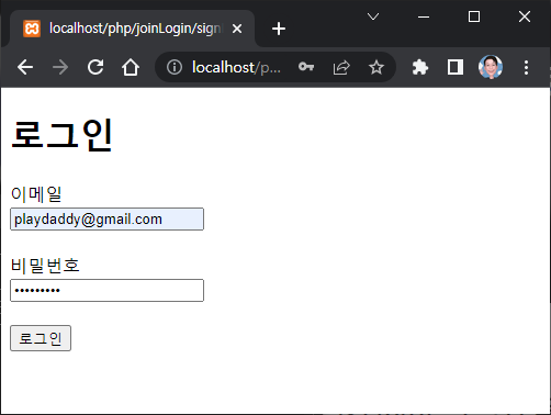 실행 URL은 http://localhost/php/joinLogin/signUp/173_signUpForm.php 이다.