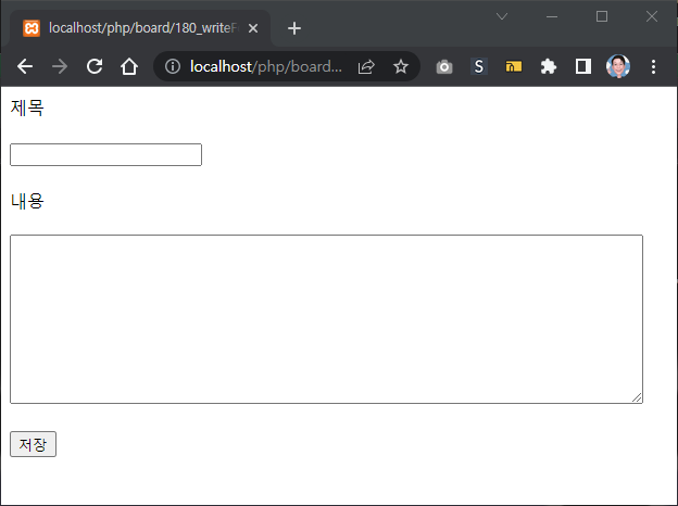 4. 실행 URL은 http://localhost/php/board/180_writeForm.php 이다.