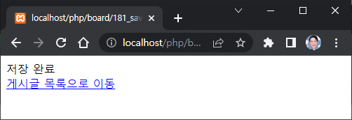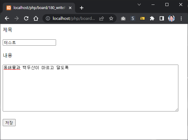 실행 URL은 http://localhost/php/board/180_writeForm.php 이다.