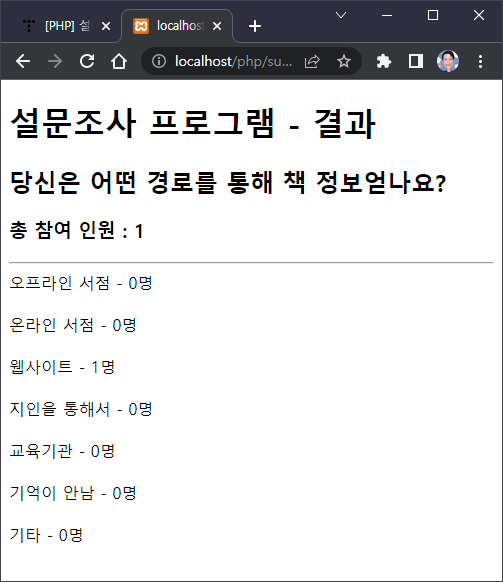 [PHP] 설문조사 프로그램 만들기 (4/4) - 설문조사 결과 확인하기