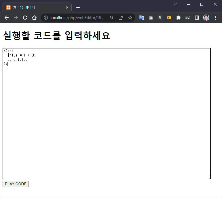 [PHP] 웹에서 입력한 코드 결과 보기 (2/2) - 코드의 실행 결과 보기