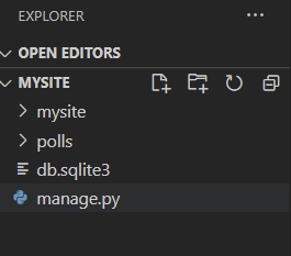 위와같이 에디터에서 polls라는 디렉터리가 생성된 것을 확인할 수 있습니다.
